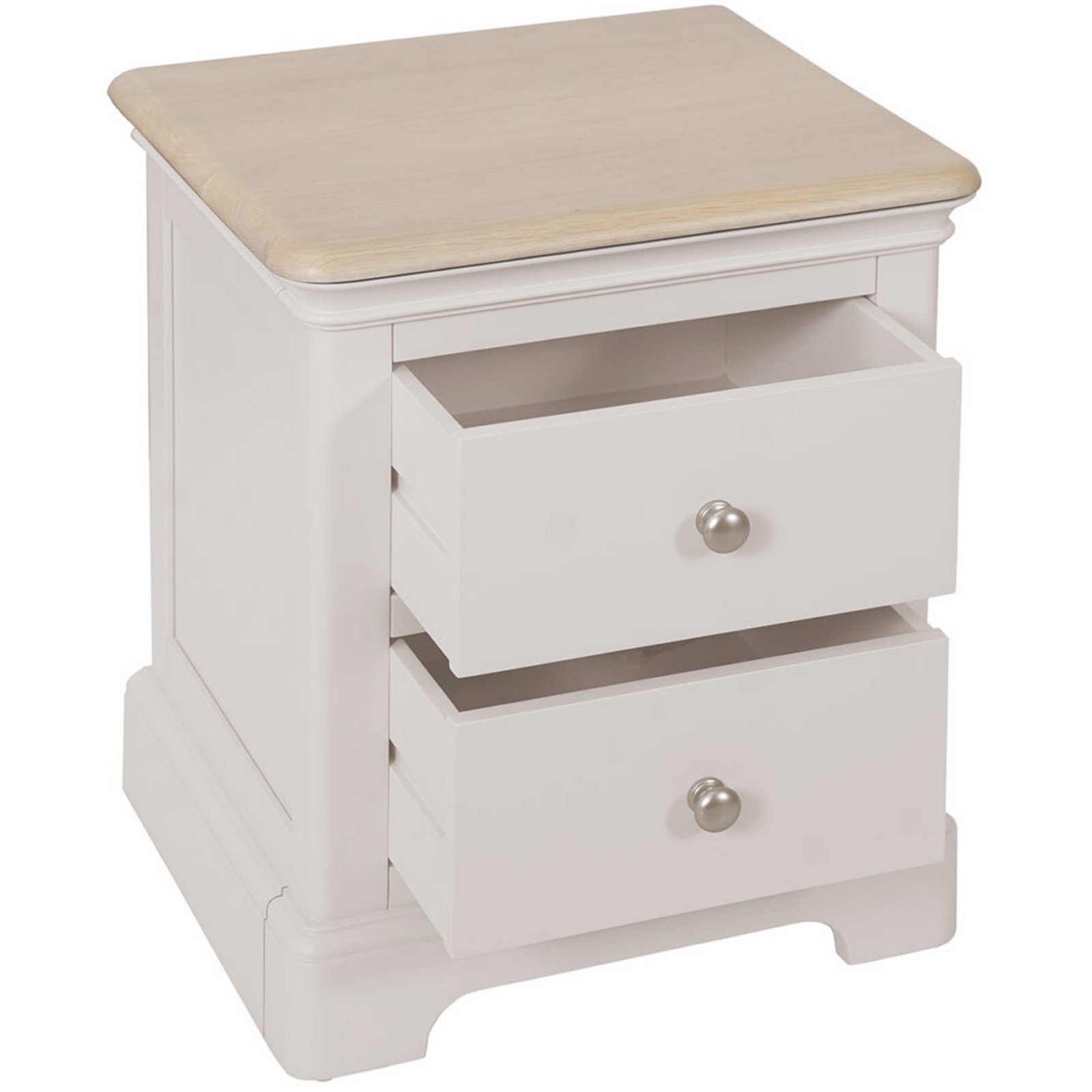 Hand finished to a high standard in Devon. Complemented by solid oak, lightly finished tops featuring softly rounded corners.