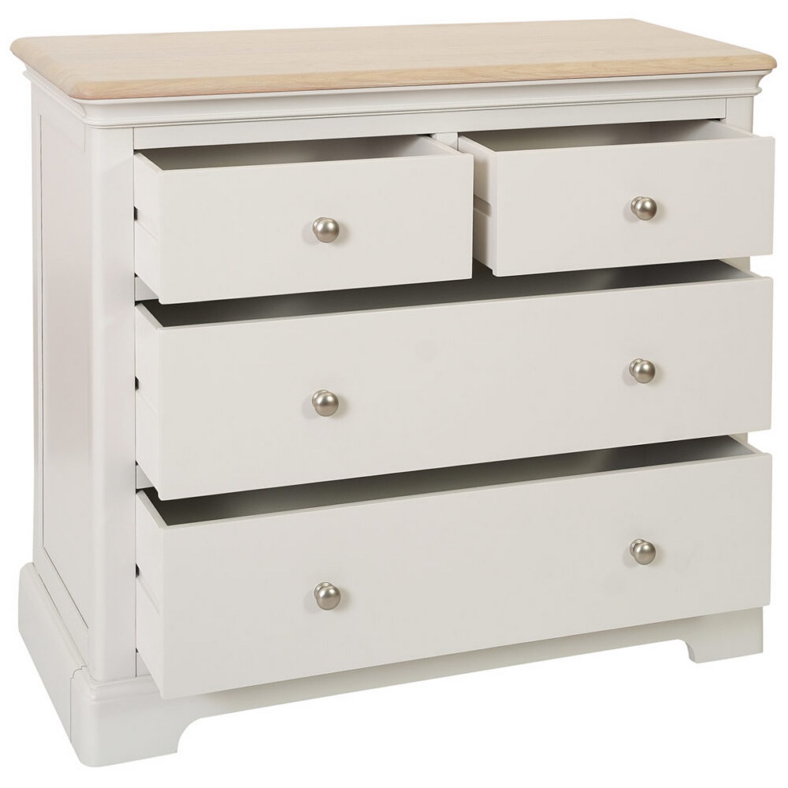 Hand finished to a high standard in Devon. Complemented by solid oak, lightly finished tops featuring softly rounded corners.