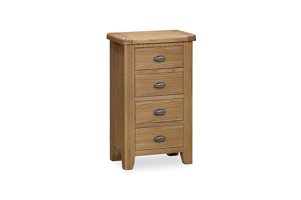The Chepstow 4 drawer tall chest is a refined storage solution that combines practicality with timeless design. This tall chest is ideal for bedrooms where space is at a premium but style is still a priority.