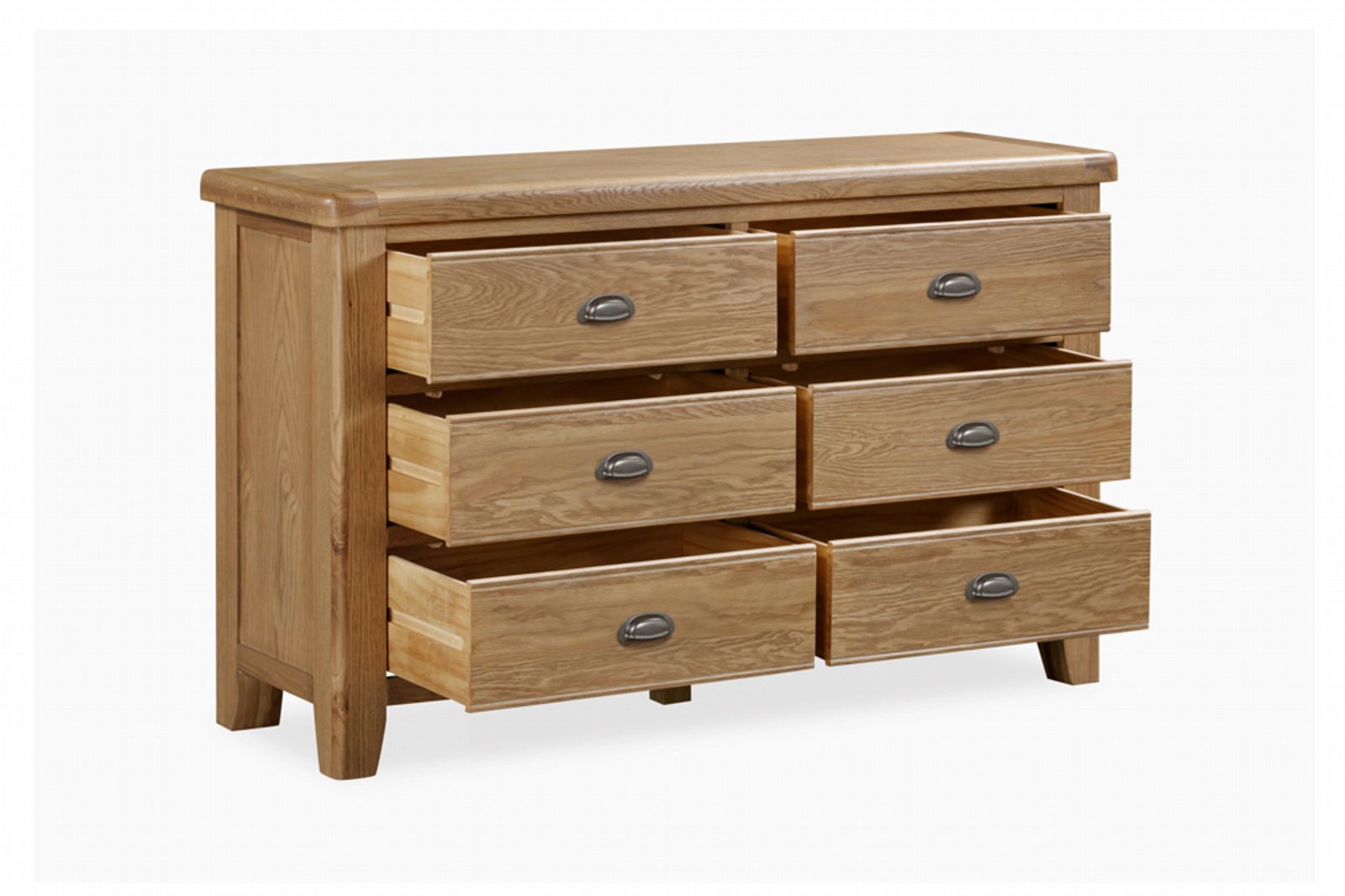 The Chepstow 6 drawer wide chest is a superb choice for those seeking generous storage with refined style. This wide chest offers six spacious drawers, ideal for organising clothing, accessories, or household essentials with ease.