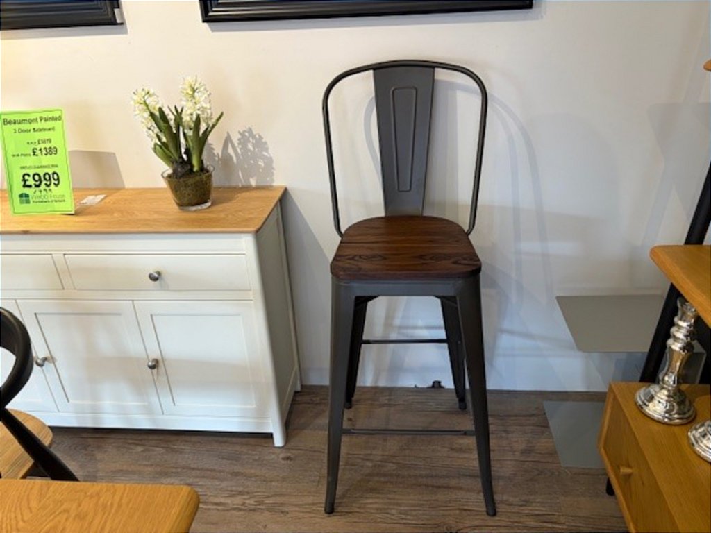 Elevate your kitchen or bar area with this stylish and modern bar stool. It features a striking contrast of a durable metal frame supporting a rich, dark wood seat, making it a perfect fit for contemporary homes. This barstool is currently available at an amazing discount and comes with the added benefit of immediate delivery, don't miss this deal!
