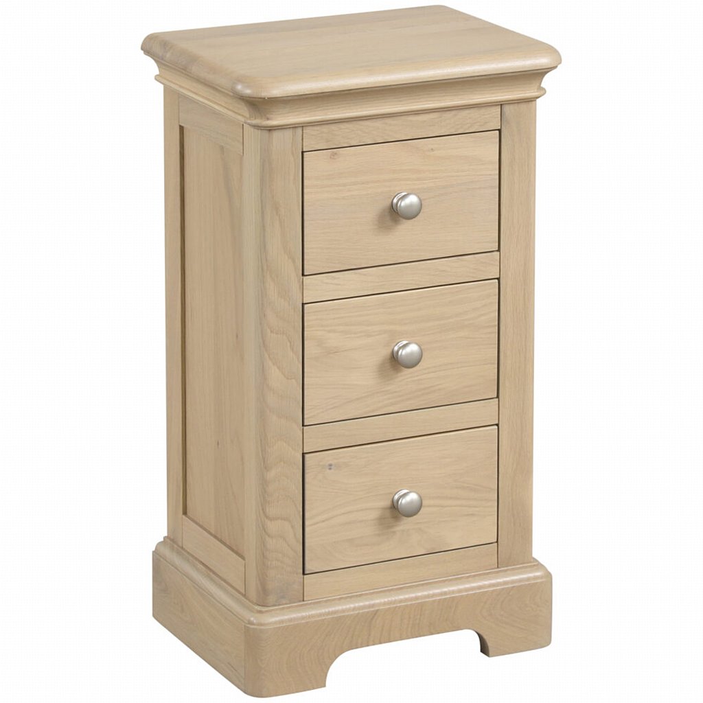 The Hampshire Oak 3 Drawer Compact bedside table is a perfect elegant, and practical addition to any bedroom. This piece is part of a larger, cohesive furniture range, allowing you to create a comprehensive and stylish bedroom suite. Expertly crafted for durability and featuring a classic aesthetic, this range is built to last.