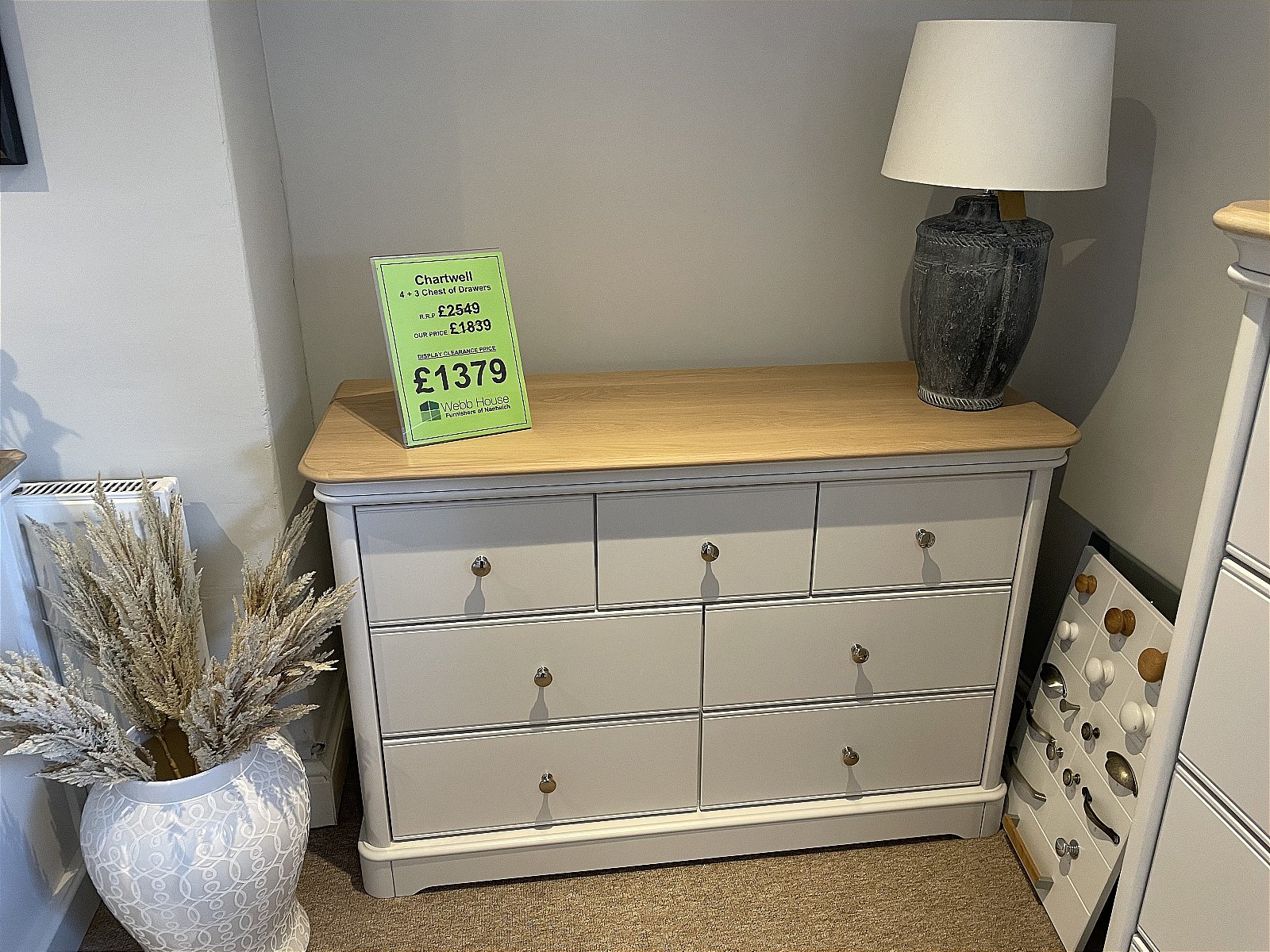 We are currently offering a Chartwell 4 + 3 Chest of Drawers at our Nantwich furniture showrooms as a display clearance item. This represents a superb opportunity to own a piece of premium British furniture at an exceptional price. Because this specific model is part of our floor clearance, it is available immediately for collection or delivery. We invite you to visit our Nantwich branch to appreciate the quality of this range in person while this unique offer lasts.