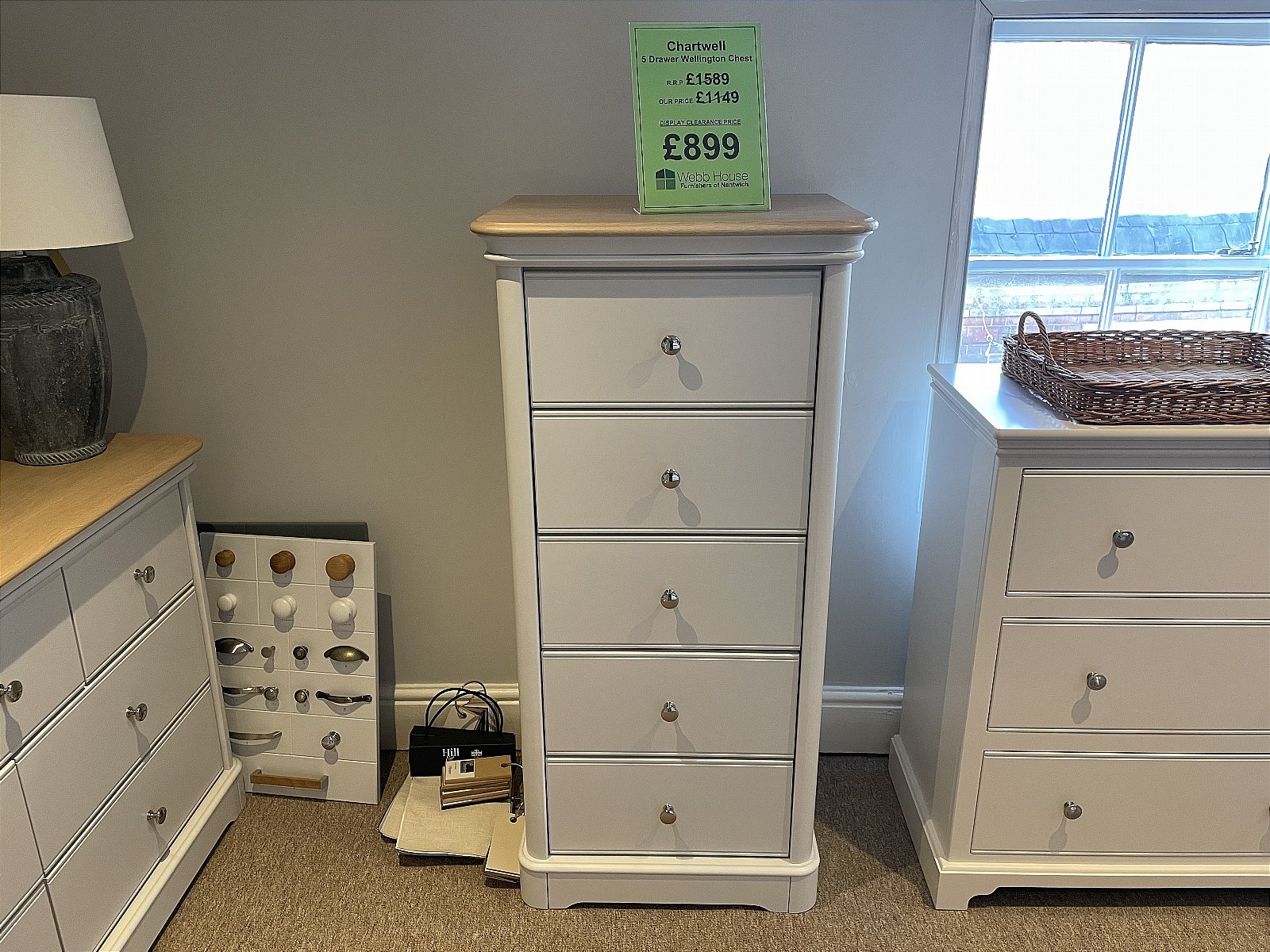 We are currently offering a Chartwell 5 Drawer Wellington Chest at our Nantwich furniture showrooms as a display clearance item. This represents a superb opportunity to own a piece of premium British furniture at an exceptional price. Because this specific model is part of our floor clearance, it is available immediately for collection or delivery. We invite you to visit our Nantwich branch to appreciate the quality of this range in person while this unique offer lasts.