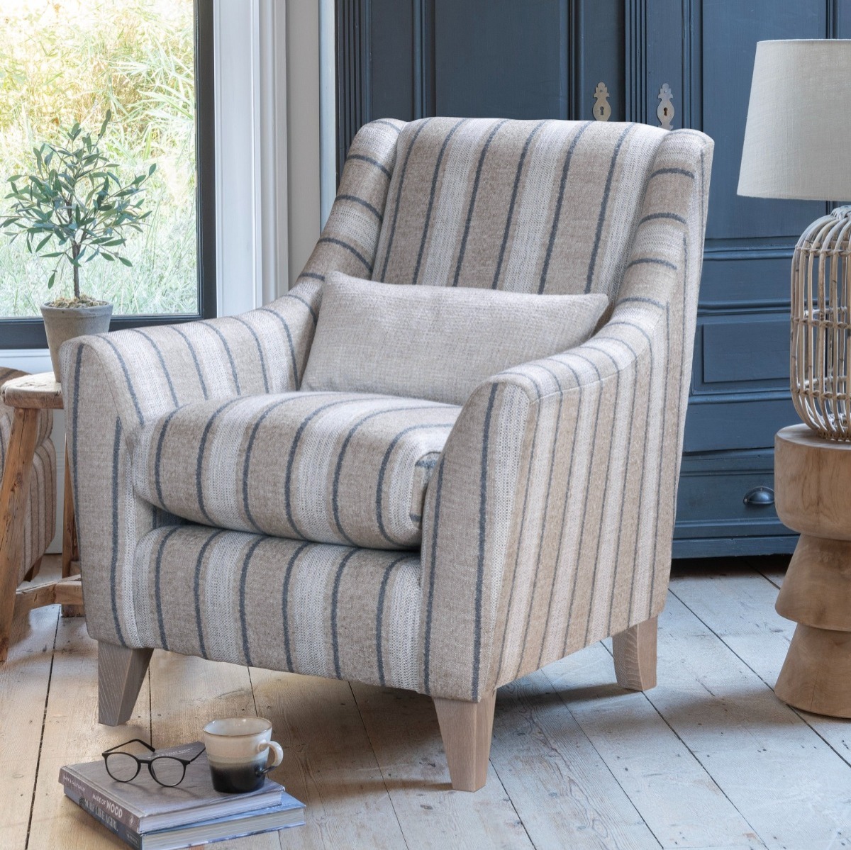 The Annecy Accent Chair: A beautiful high-backed companion piece that adds a pop of pattern or velvet to your room.