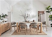 The Forma 140cm dining table is a superb addition to our collection of wood dining tables, available now in our Nantwich showrooms. This piece beautifully blends timeless elegance with modern resilience. The table's light oak details bring a welcoming warmth and character, making it a versatile piece that complements various interior styles. Its natural melamine top is not only visually appealing but also offers a highly durable and practical surface, expertly designed to withstand daily use. This hardwearing finish ensures the table maintains its stylish, refined look for years to come.