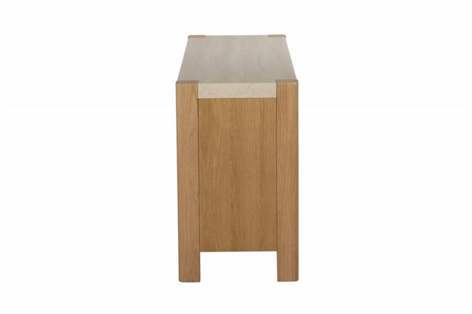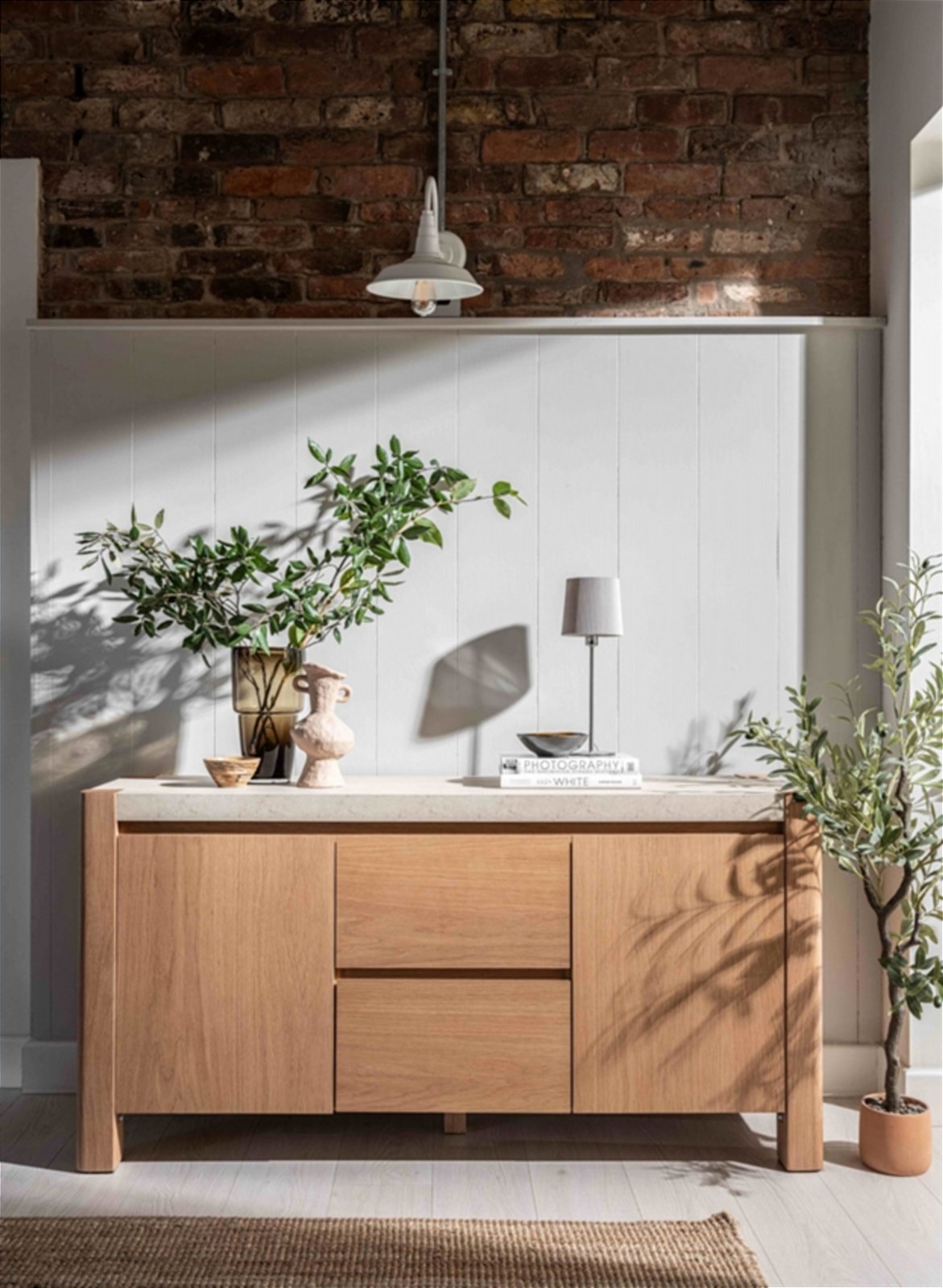 The Forma Wide Sideboard offers a perfect blend of natural beauty and contemporary design. This exquisite piece, now on display at our Nantwich showroom, is expertly crafted with a solid natural oak base that provides a warm and durable foundation.