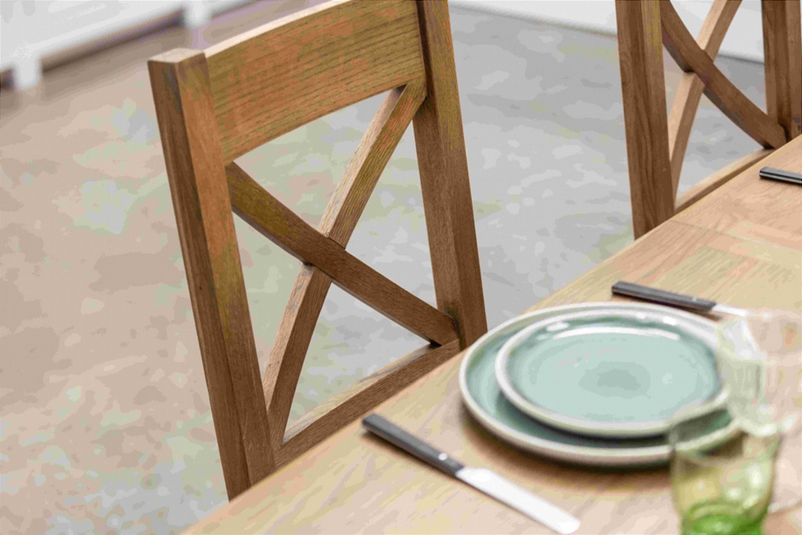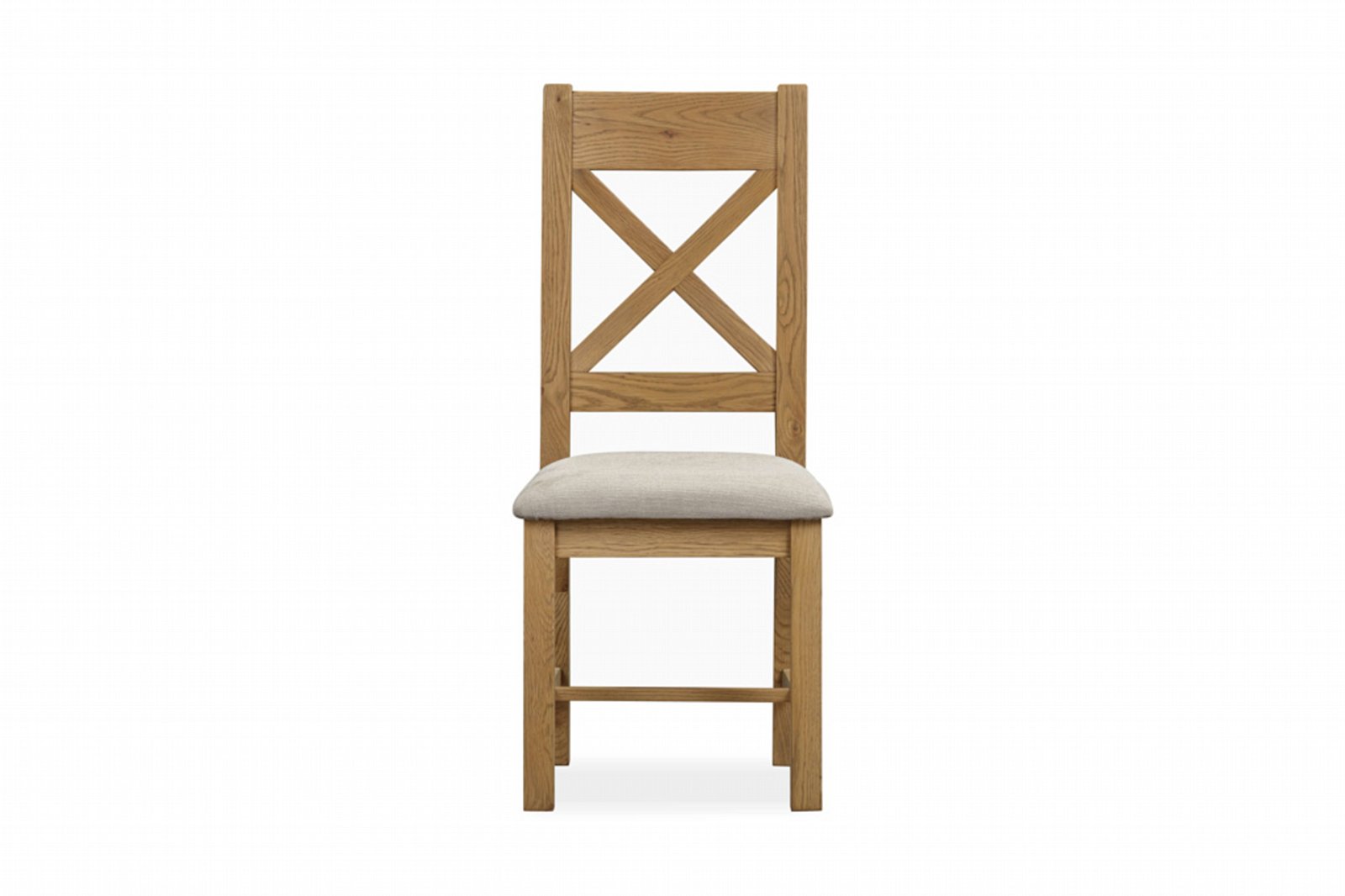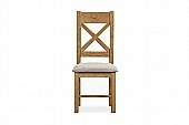 These chairs are crafted from solid oak and oak veneers, finished in a rich smoked tone that enhances their natural grain and character. The distinctive X back design adds a touch of traditional elegance, while the upholstered seat ensures a comfortable dining experience for everyday use or special occasions.