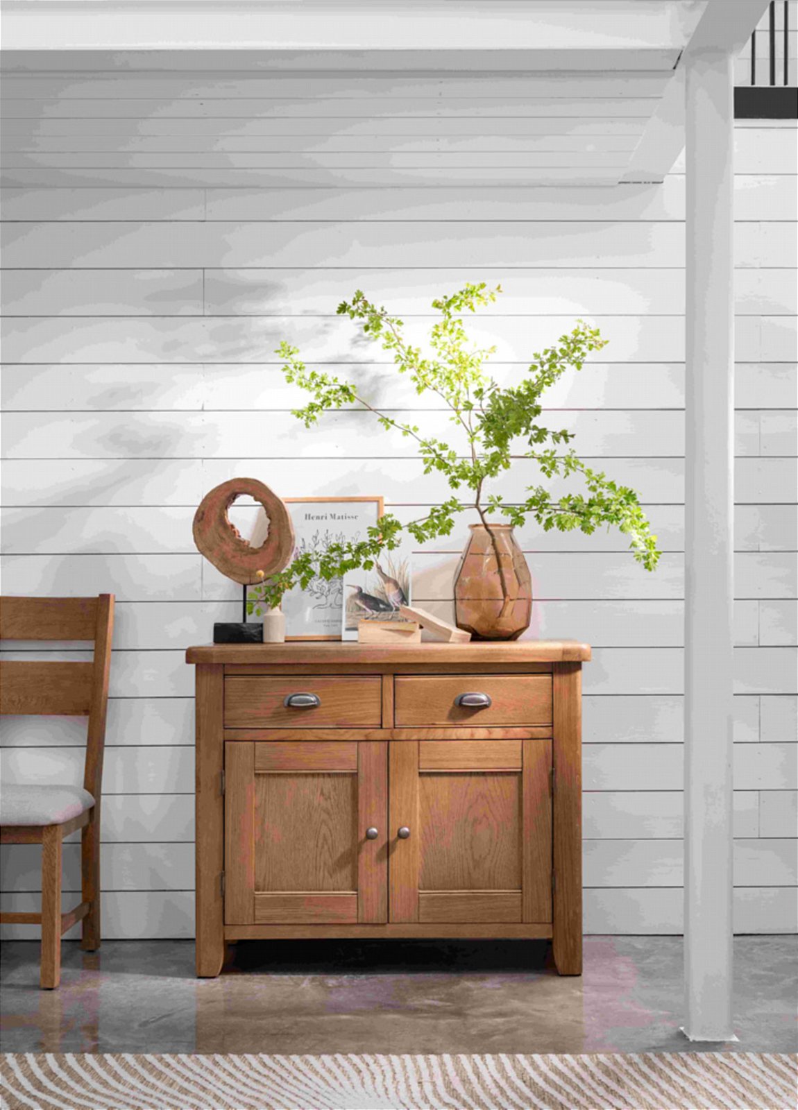 The Chepstow narrow sideboard offers a stylish and space-efficient storage solution, ideal for modern and traditional homes alike. This beautifully crafted piece is made from solid oak and oak veneers, finished in a rich smoked tone that enhances the wood’s natural grain and character.