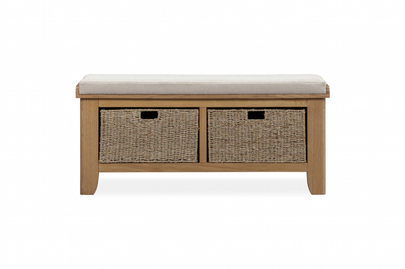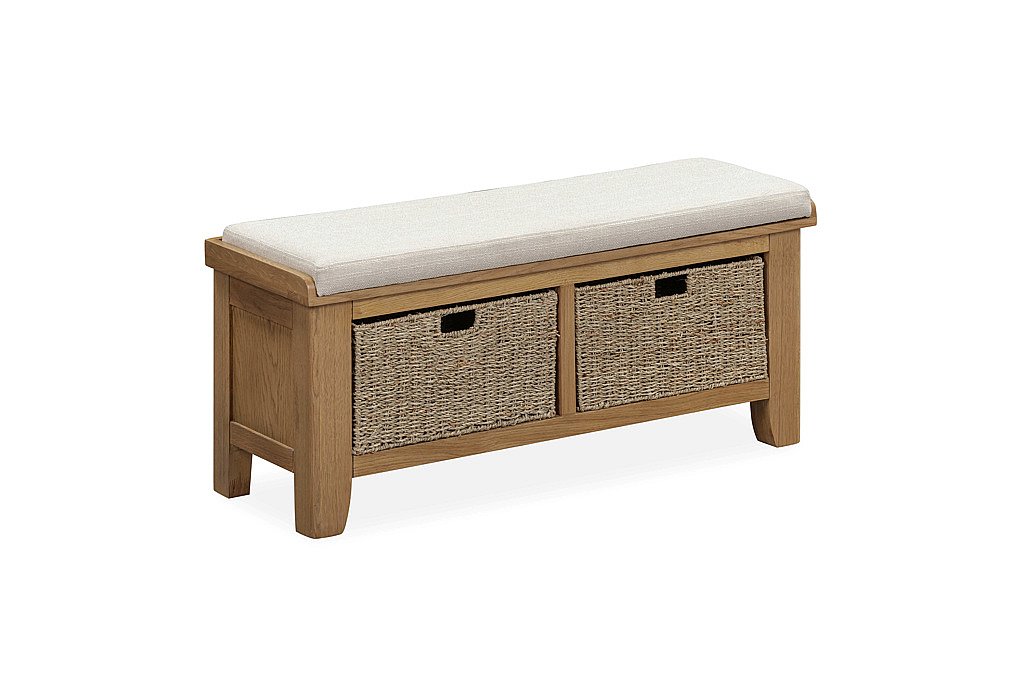 The Chepstow 100cm upholstered hall bench is a stylish and practical addition to any hallway, bedroom, or living space. With its natural oak finish it offers a timeless aesthetic that complements both classic and contemporary interiors.