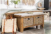 The bench features a comfortably upholstered seat in a neutral fabric, providing a welcoming spot to sit while putting on shoes or simply relaxing. Measuring 100cm in width, it fits neatly into smaller spaces without compromising on comfort or design.