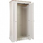This elegant two-door wardrobe provides full-length hanging space, making it ideal for storing longer garments such as dresses, coats, and suits. It features a single full-length oak hanging rail and is constructed from white oak, pine, and MDF for durability and strength.