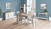 Crafted from solid oak and oak veneers, it features a warm, hand-waxed finish that beautifully highlights the wood’s natural grain and texture. This sideboard offers generous storage with two spacious cupboards and three drawers, ideal for organising dining essentials, tableware, or household items.