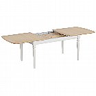 Beautifully crafted to suit both everyday meals and special occasions, this table features a solid oak top with a light lacquer finish that highlights the natural grain, paired with a Grey Mist painted base for a modern country aesthetic. Its clever pull-out leg design allows the table to extend from 136cm to 196cm, offering generous legroom and seating flexibility without compromising style.