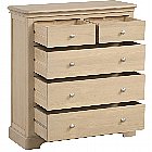 The chest features a traditional yet highly functional 2 over 3 drawer configuration, offering excellent storage capacity with two smaller drawers over three full-width ones. This is ideal for neatly storing both accessories and larger folded clothing, helping to keep your room exceptionally tidy and organised. The light oak finish gives the piece a fresh, contemporary feel, and is often complemented by subtle, modern handles. This design allows the chest to blend seamlessly with various interior styles, from traditional to modern, providing a practical and stylish storage solution.