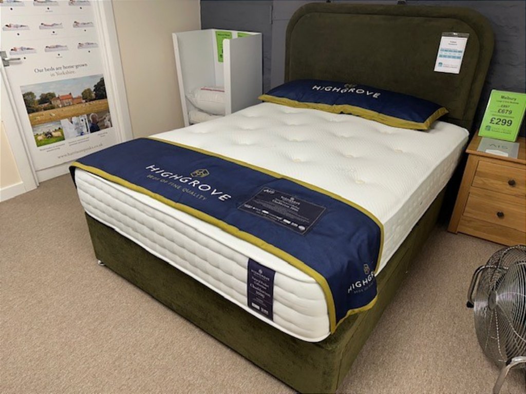 The Highgrove Chadderton 2000 King Size mattress is a display clearance item offered at an incredible discount. This premium mattress features 2000 independent pocket springs for superior support and spinal alignment, complemented by luxurious natural fillings like wool and silk for ultimate comfort. This mattress is superb opportunity to secure a high quality, handcrafted mattress at an unbeatable price with immediate delivery!