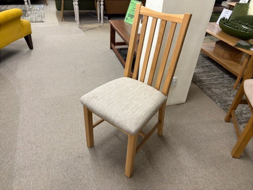 This elegant chair is built with a sturdy, solid oak frame from Anbercraft and finished with a comfortable, stylish beige fabric seat.