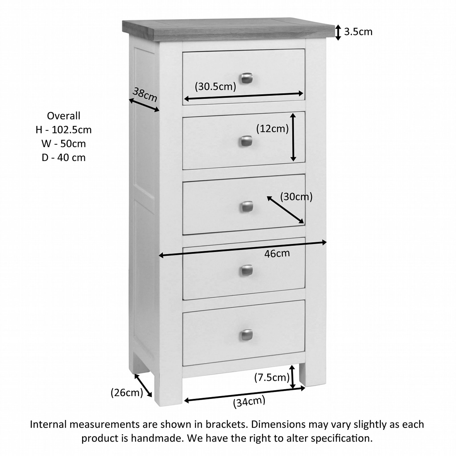 The Oxford Painted five‑drawer Wellington chest offers a stylish and practical storage solution, perfect for adding character to any bedroom. Its tall, slender design makes it especially useful in rooms where floor space is limited, while still providing generous storage across five smoothly operating drawers.