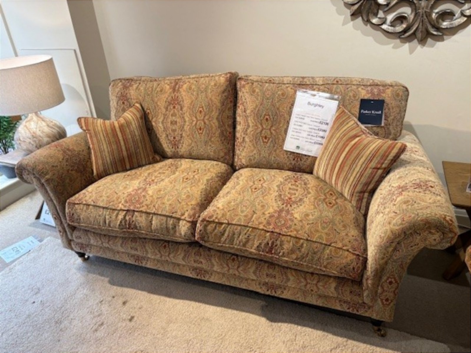 The Parker Knoll Burghley is a sophisticated collection, and we currently have a large 2-seater sofa and matching armchair available as a display clearance set. This range epitomises classic British craftsmanship; designed with a formal high back and elegant scrolled arms, the Burghley offers a refined silhouette that complements both traditional and contemporary interiors.