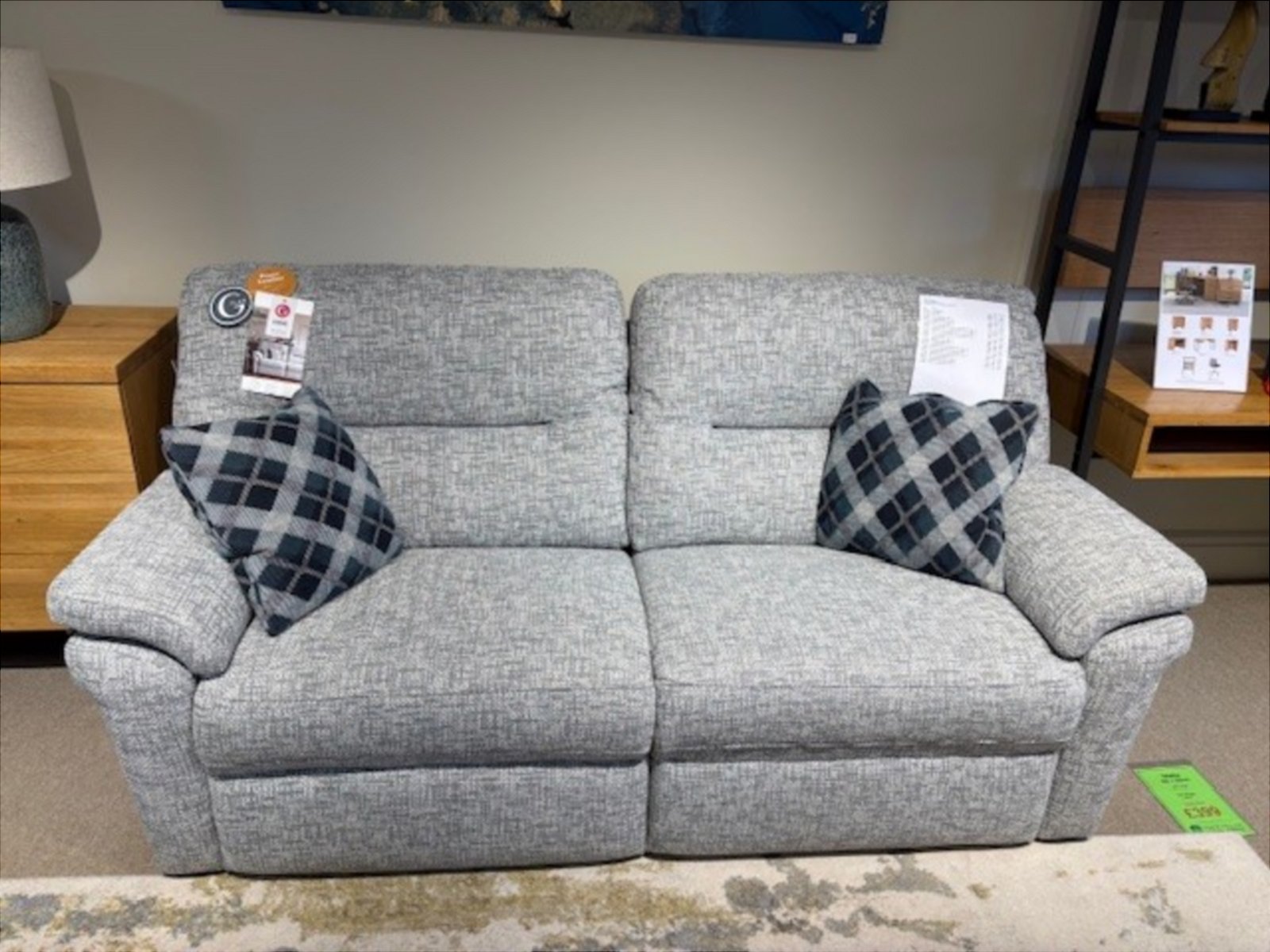 This specific display clearance set includes the large 2 seater sofa and matching chairs, offering a choice between smooth manual recline actions and effortless power functionality. The power models are equipped with integrated USB charging ports and metal touch buttons for ultimate convenience. Handcrafted in the UK with a 25 year frame guarantee, this fabric suite is finished in a premium, durable upholstery.