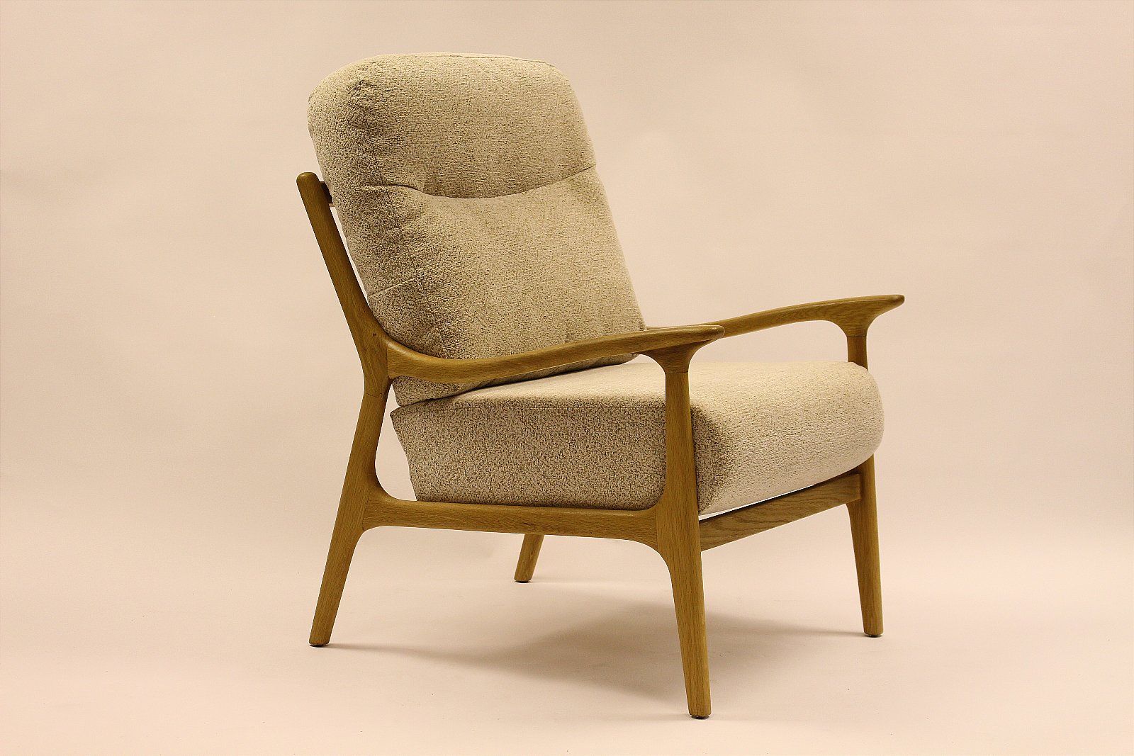 Mixing mid-century design with contemporary Scandi style, this is a wonderfully proportioned, luxurious chair with a solid wood frame, carefully crafted in American White Oak for strength and durability. Featuring deep, sumptuous seat and back cushions for comfort, the chair is available in a choice of fabrics to complement any home interior décor.